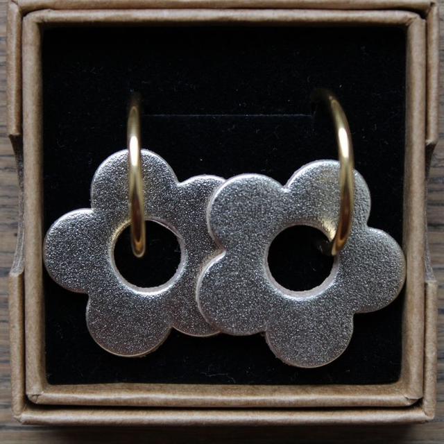 Boucles d’oreilles créoles fleurs en cuir de vachette doré