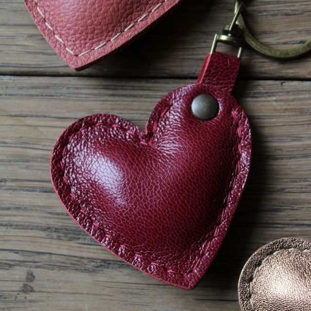 Porte-clé en cuir véritable en forme de cœur. C'est le petit cadeau idéal pour dire à nos proches qu'on les aime.