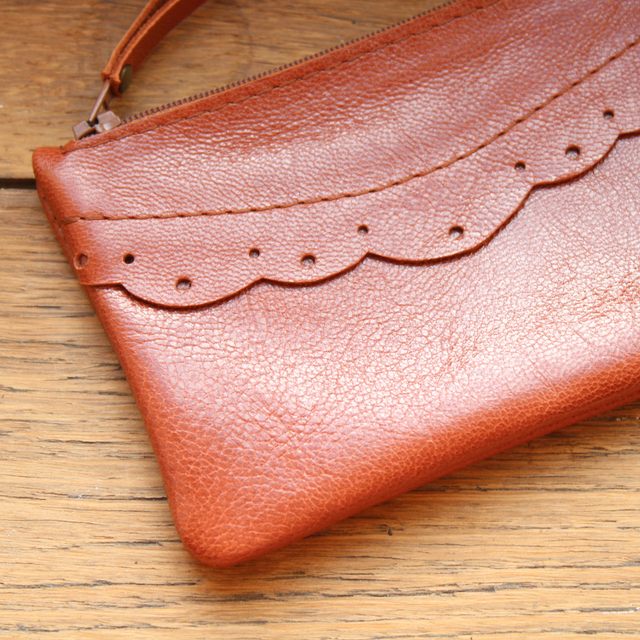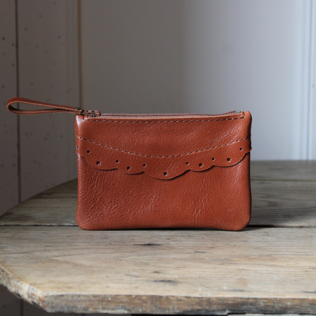 Design élégant avec sa bordure en cuir inspirée des tissus en broderie anglaise. Le format permet d'y ranger monnaie et billets. Il s'ouvre et se ferme facilement par sa fermeture éclair de 10 cm.