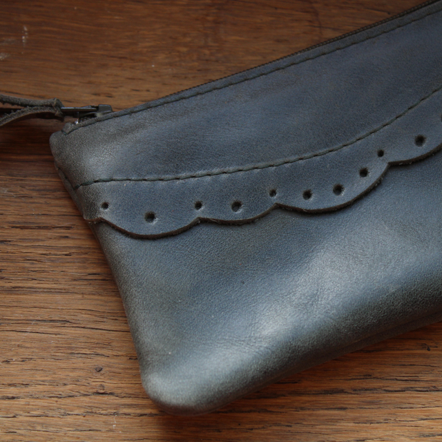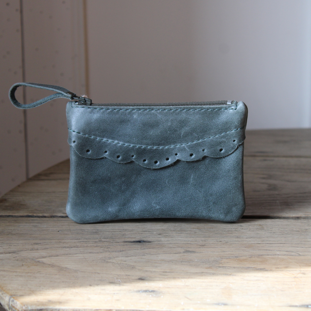 Design élégant avec sa bordure en cuir inspirée des tissus en broderie anglaise. Le format permet d'y ranger monnaie et billets. Il s'ouvre et se ferme facilement par sa fermeture éclair de 10 cm.