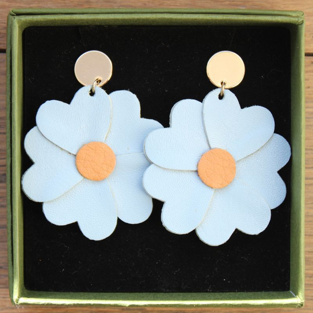 Boucles d’oreilles en cuir fabriquées artisanalement en France.